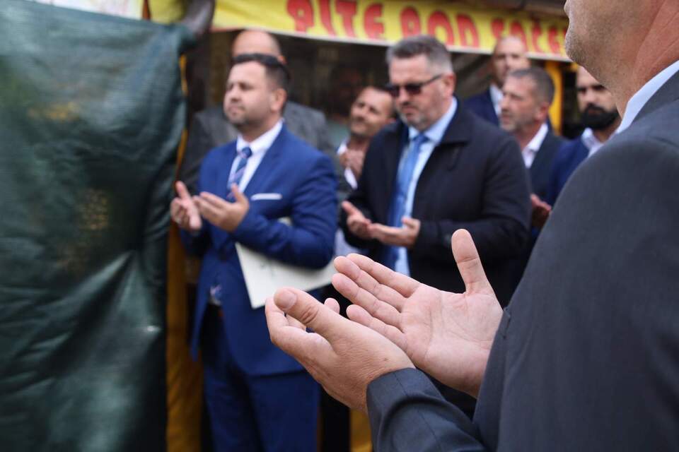Dovu nakon polaganja kamena temeljca proučio je muftija banjalučki u mandatu 1993-2012. Edhem-ef. Čamdžić.